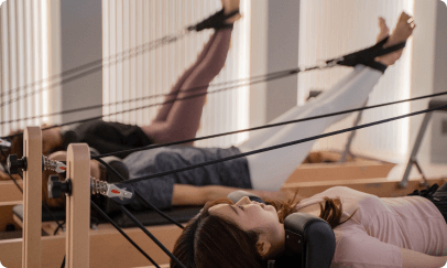 マシンピラティスは負荷の調節が可能であり、レッスン時間も45分と短く設定しているため、初めてピラティスをする方でも無理なく始めていただくことができます。