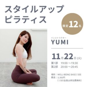 WELL-BEING BASE I SEEでは、11月22日(火)に「スタイルアップピラティス」を2部制で開催いたします🧘♀✨